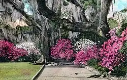 In 1927 the Charleston News and Courier related that "in the wonderful Kew Gardens of London, England, there is a notice that tells all who walk [toward their collection of azaleas] that azaleas in their highest glory are to be found in Magnolia, near Charleston, South Carolina."[86]