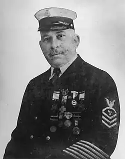 Watertender, serving on board the U.S.S. Salem, for extraordinary heroism in the line of his profession on the occasion of the accident to one of the boilers of that vessel, 13 September 1909.