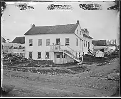 After the battle, Burns was elevated to the role of national hero. Hearing about the aged veteran, Mathew Brady's photographer Timothy H. O'Sullivan photographed Burns recuperating at his home on Chambersburg Street and took the story of Burns and his participation in the battle back home to Washington. When President Abraham Lincoln came to Gettysburg to dedicate the Soldiers National Cemetery and deliver his Gettysburg Address that fall, he requested to meet with Burns. Burns accompanied the president on a walk from the David Wills house to the Presbyterian Church on Baltimore Street on November 19, 1863.[11] Burns's fame quickly spread and a poem about his exploits was published by Bret Harte in 1864.[12]