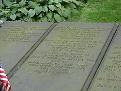 Scott died in New York City on September 14, 1784, and his body was interred at the north entrance of Trinity Church, New York.[1] His inscribed slab is visible from the corner of Wall Street and Broadway. An equestrian statue is erected in his honor in Upper Manhattan.
