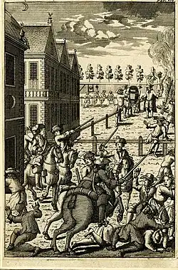 The Whigs Unmask'd (1713), satirical print of a 1712 riot, published by John Morphew.