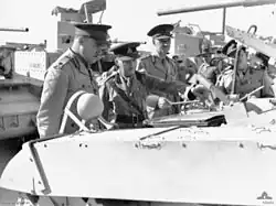 Northcott joined the Second Australian Imperial Force (AIF) as a major general on 1 September 1941 and was given the AIF serial number VX63396. He was attached to the British 7th Armoured Division in the Middle East to study armoured warfare, returning to Australia in December 1941 to organise the new 1st Armoured Division.[2] The job was a challenging one that some of his subordinates felt that Northcott was not up to, given his lack of command experience.[9] In March 1942, Northcott found out from The Herald newspaper that he was to be promoted to command II Corps. "This is what they do to me", was his comment, "just as my first tank is coming down the road".[10] The new post came with a promotion to the temporary rank of lieutenant general on 6 April 1942, which became substantive on 12 December 1945.[2] Northcott was succeeded as commander by Major General Horace Robertson, an officer with a distinguished combat record in the desert.[9]
