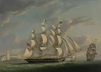 "Off Dover, The Merchantman John O'Gaunt in Two Positions", by Robert Dodd, 1811