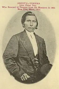John Other Day (c. 1819-1869), also known as Anpetutokeca, was a Dakota mediator from Minnesota who sought peace between the Dakota and Euro-American settlers.