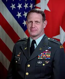 From 1989 to 1990, Otjen was assistant division commander of the 8th Infantry Division.[10] He commanded the division from 1990 to 1992, and began the process of mobilizing the organization to take part in Operation Desert Storm.[11] Some 8th Division units took part in the conflict, but the bulk of the division did not deploy before the conflict ended.[12] Otjen was the 8th Division's last commander before the organization was inactivated in 1992.[13]