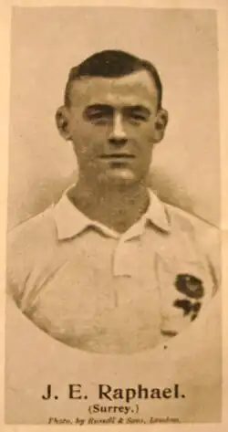 John Edward Raphael (30 April 1882 – 11 June 1917)[1] was a Belgian-born sportsman who was capped nine times for England at rugby union[1] and played first-class cricket with Surrey. He was a Barrister by profession and a Liberal politician.