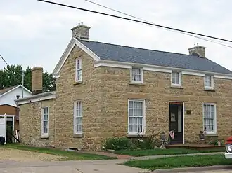 Built sometime between 1850 and 1860, the 1½-story vernacular stone house features a symmetrical, three-bay-wide, facade on the eave side, and a single-story wing in the back. While one of the very few stone buildings in Sabula, it is an example of the common type of stone house found in Jackson County.[2] John S. Dominy, who is associated with this house, built the first blacksmith shop in town. The person who designed and built this house is not known.[2]