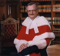 Sopinka was involved with several high-profile cases, including acting on behalf of Susan Nelles when she sued the government of Ontario and the Toronto police for malicious prosecution after the withdrawal of charges against her for murdering babies at the Hospital for Sick Children in Toronto.[6] An inquiry into her case exonerated her and she won damages from the government for her ordeal. In 1986 he represented the Civil Liberties Commission of the Ukrainian Canadian community, the CLC at the Deschênes Commission of Inquiry on War Criminals and argued against the deportation of suspected war criminals to their native lands, particularly the Soviet Union.[7] He also served as counsel to the William Parker Inquiry that looked into the conduct of former cabinet minister Sinclair Stevens.[8]