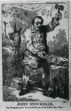 John Stockdale (25 March 1750[1] – 21 June 1814[2]) was an English publisher whose London shop became a salon for the political classes and who had to face two actions for defamation. One by the House of Commons became a cause célèbre and resulted in an important change in the law.