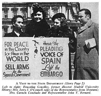 Bernard joins a delegation of Spanish-American women protesting the American embargo on Spain, April 5, 1938