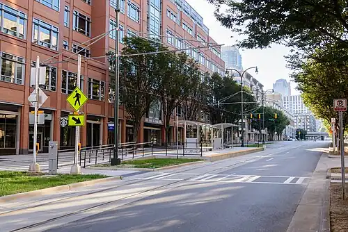 Johnson & Wales is a streetcar station in Charlotte, North Carolina. The at-grade island platform on West Trade Street is a stop along the CityLynx Gold Line, serving Johnson & Wales University and Gateway Village.
