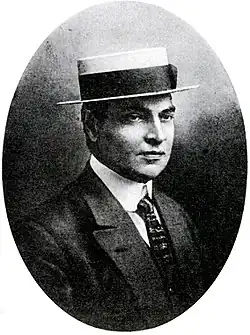 Jonas Žilius-Jonila was born on 18 October 1870 in the village of Jurkšai, then the Suwalki Governorate of Congress Poland. He was educated in the Marijampolė Gymnasium and Płock Seminary.[1] In 1893 he graduated from Overbrook Priest Seminary and became a priest. In 1893 Žilius-Jonila began publishing poems and stories which were marked by romantic nationalism.[2] From 1894 to 1898 he was the chairman of the Lithuanian Alliance of America. Žilius-Jonila was also an editor of the US-based Tėvynė newspaper and chairman of the Lithuanian committee at the 1900 Paris Exposition. In 1903, Žilius-Jonila established the Motinėlė Society.[3] Although he stopped being a priest in 1908, he officially retired in 1921.[4] From 1910 to 1914 Žilius-Jonila studied in Zürich and Berlin. He was active in the Lithuanian Society for the Relief of War Sufferers. From 1917 to 1919 he was a part of the Lithuanian National Council.[5] In 1918 he was the secretary of the executive committee of the Lithuanian Seimas in New York City, where he advocated for the recognition of Lithuania's independence. In the Paris Peace Conference, Žilius-Jonila represented the Lithuanian-American community.[6]