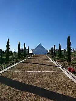 Hinojosa's memory remains politically charged.[165] Some tackle the Hinojosa-Lorca parallelism[166] by declaring that both poets fell victim in differing ways to the "irrational hatred" of an "absurd war",[167] yet among countless books discussing the Spanish Civil War terrors, almost all mention Lorca and almost none mention Hinojosa.[168] Both right-wing and left-wing groups started to claim Hinojosa's legacy. Some Traditionalist sites honor him as "their man",[169] while certain progressive authors present Hinojosa as a martyr who dedicated his life to fighting imperialism, nationalism and the Church;[170] others imply his homosexuality.[171] The Málaga San Rafael cemetery, where Hinojosa was executed, was doted in 2014 with a monument-mausoleum to honor "those who gave their life in defense of freedom and democracy and whose remains rest here or in other sites".[172] Hinojosa has never been mentioned in a spate of press notes related,[173] some of which noted a construction recording "la barbarie de la represión franquista".[174]