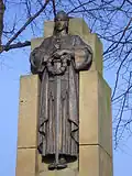 War memorial | Gardens of the Church of St John-at-Hackney, Hackney, London | 1921 | Obelisk-mounted statue | Bronze and Portland stone | 4.6m tall | Grade II | Q26671054 | [8][9] |