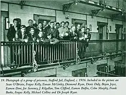 Joe Sweeney, with other 1916 rebels, including Michael Collins and fellow Donegal connection and St Enda's pupil Eunan Mc Ginley (son of PT Mc Ginley), in Stafford Jail, England, c 1916