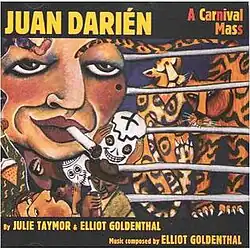 Juan Darién: A Carnival Mass is a musical with music and lyrics by Elliot Goldenthal and a book by Goldenthal and Julie Taymor. The musical premiered Off-Broadway in 1988 in the former St. Clement's Church.[2] It was subsequently reworked and refined before playing on Broadway in 1996 at the Vivian Beaumont Theatre, directed by Taymor. The musical, based on a modern fable of the same name by Horacio Quiroga, is set in the jungle in South America, with a jaunty skeletal Death ever present. Its story concerns an orphaned jaguar cub who is miraculously transformed into a human child by the compassion of a woman who has lost her own baby; the boy must then confront the savagery of human civilization. The production employs masked actors and puppets, and the score includes elements of Latin American folk music and the Requiem Mass.[3] The piece was revived and toured extensively.[4]