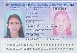 An official sample of a Philippine passport with "Maria dela Cruz" as the fictitious placeholder owner of the document.