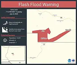 2. ^ a b "Handful of flash floods reported Monday in Ruidoso amid new evacuation orders". Source NM. July 14, 2025. Retrieved July 14, 2025.