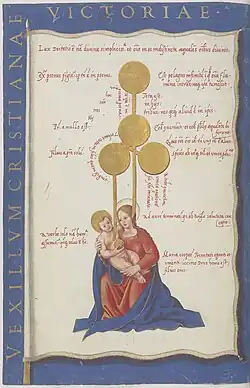 During his legation of 1507–1509 to Germany, Dragišić edited for publication the Homelia doctissima of Cardinal Carvajal, adding a dedicatory letter to Maximilian I.[18] During this period he also wrote Vexillum christianae victoriae, a treatise divided into 63 "contemplations" on divine simplicity and related Trinitarian topics, still trying to demonstrate concord between Scotism and Platonism.[19] Originally dedicated to Maximilian, who received a copy (now MS Palat. 4797 in the Austrian National Library), a new copy was dedicated to King Francis I of France in 1517 (now MS Lat. 3620 in the National Library of France). There are two other undedicated manuscripts.[18]