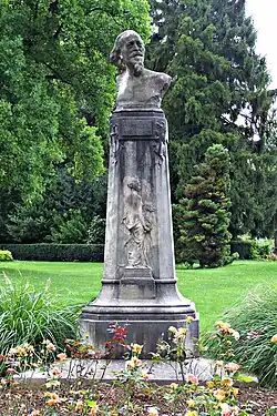 The French sculptor became a regular exhibitor at the Paris Salon held by the Académie des Beaux-Arts in 1853 and executed numerous busts and other works.[4] At the Salon of 1857, his piece titled "Faune" and its bold realism earned praise from critics.[2] In the sculpture section of the 1858 Paris Salon, the pupil of François Rude presented a sculptural piece made from plaster titled "Saint Sébastien".[5] Later, it found its place within the crypt of the Church of Saint Ferjeux.[2]