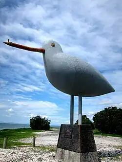 Torea Mangu Oystercatcher sculpture, at Kaiaua, New Zealand