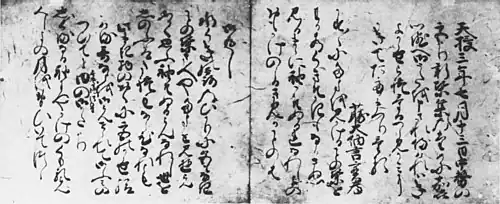 In the seventh month of 1377, at Prince Munenaga's request, she submitted the Kaki Mon'in Go-shū, from which seventeen poems were included in the Shin'yō Wakashū, an important fourteenth-century anthology compiled by the Southern Court.[1]