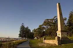 From the 1820s Captain Cook's Landing Place was a popular destination for people with an interest in European history in Australia. Many people visited various places of interest, such as the plaque at Inscription Point, which had been installed by the Philosophical Society of Australasia in the early 1820s.[22] In 1870 Thomas Holt erected Cook's Obelisk to mark the European arrival at Botany Bay. To cope with the area's increasing visitation, Holt built the first wharf at Kurnell just adjacent to the obelisk, and a steam ferry began to operate some time around 1882.[8][2]