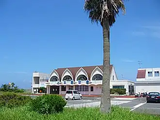 Kamigotō Airport (ICAO: RJDK) is a public aerodrome located on Kashiragashima Island (頭ヶ島), a smaller bridge-linked island just off the far east coast of Nakadorijima in the Gotō Islands, Nagasaki Prefecture, Japan. The site is about 8 km (5.0 mi) northeast[1] of Kamigotō town office, Shinkamigotō. The terminal was renovated in July 2015 and the airport remains active for emergency medical shuttles, but commercial passenger routes have been suspended for several years. Given the airport's lack of traffic and its unusually remote location, the runway has been used occasionally as a venue for 'dark sky' appreciation tours with tourists lying on the runway and staring at the cosmos above.[2]
