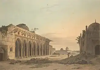 In 1010 A.D. Mahmud of Ghazni saw Kannauj as a "City which raised its head to skies which in strength and structure might justly boast to have no equals".[24][25]