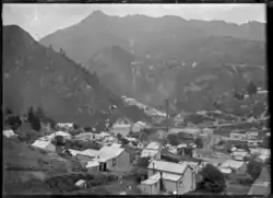 The Talisman, Crown and Woodstock stamping battery remains at the lower end of the gorge and are some of the most significant reminders of the time. Their location at the confluence of the Waitawheta River and the Ohinemuri River was chosen to make use of the available water power of the rivers. Mining at the batteries occurred roughly from the 1880s to 1950s, with the most productive years around the turn of the century,[2] when the area produced 60 percent of the total gold from New Zealand. The batteries used to crush the ore from the extensive tunnels mined through the steep local mountainsides of the Waitawheta Gorge, with the Victoria Battery, one of the largest and most advanced at the time.[3]