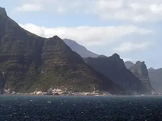 It forms a prominent landmark overlooking the harbour at Hout Bay.[1] An unusual feature is that sand has been blown up it by the wind, causing a dune-like feature. This has been popular with local residents to surf down it on polished boards or sheets. Its cliff on the southern side is also a famous climbing spot.