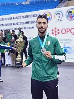 Karim Belghini is an Algerian karateka, he is a two-times medalist in the African championship including a silver medalist at the African championship held in Gaborone, Botswana[1][2] and a bronze at The African championship too held in Kigali, Rwanda,[3] he won the gold medal at the (African games),[4] he has Also won medals in individual and team event in several editions of international karate competitions and tournament.