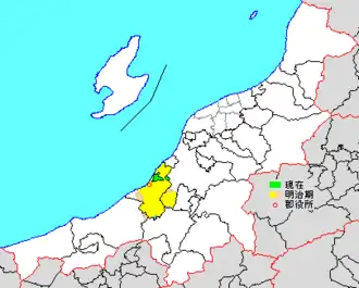 Map showing original extent of Kariwa District in Niigata Prefecture: