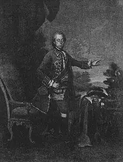 Karl Gotthelf von Hund came from Silesia, descended from Henry von Hund und Altengrotkau (ca 1480). Henry's son was Commander of the Order of Malta in Glatz, where in 1518 and 1523 he held the Office of the Governor.[1] Documents from around 1300 show John and Christopher von Hund, but it is not proven that they belong to the line that later became Altengrotkau. Karl Gotthelf's father, Joachim Hildebrand von Hund was chamberlain and Electoral Saxon landowner. The family of von Hund and Altengrotkau owned their estate from 1607 and from 1704 the estate of Upper Kittlitz in Upper Lusatia. Karl's father died very early, so that his still minor son inherited the estate. The guardianship of the son and his mother fell to Caspar Heinrich von Rodewitz. Karl Gotthelf was the youngest of three children, but his elders died before his birth, so that he was entitled to special care and a good teaching. He studied in Leipzig from 1737 to 1739. Then he joined the Army under the command of Colonel Friedrich von Schoenberg. Because of the death of his beloved, the daughter of his guardian, von Hund decided never to marry. Hund became chamberlain to the elector of Cologne.