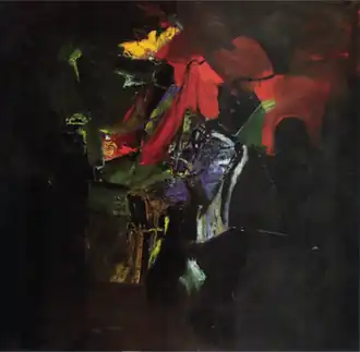 In the early 1950s Kasten experimented with Cubism and non-objective painting but after studying at the Hans Hofmann School in Provincetown, Mass in '51 he turned to Abstract Expressionism. Hofmann's modern art philosophy stressed "pictorial structure, spatial illusion, and color relationships."[9] In her biography of the San Francisco School of Abstract Expressionism Susan Landauer noted Kasten as the artist who came closest to these tenets. Of that period Kasten said, "It was a great period to work in. Just letting things flow and seeing what happens... I think I got more color into painting during that time than most guys."[4]