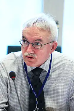 Karl V. Matthíasson is an Icelandic priest and former politician. He was a member of Alþingi from 2001 to 2003 and again from 2007 to 2009. Originally a member of the Social Democratic Alliance, he joined the Liberal Party in March 2009 due to his views on the fishing industry regulations not coinciding with the views of the party. In the 2009 Icelandic parliamentary election, he failed to win a seat.[1][2]