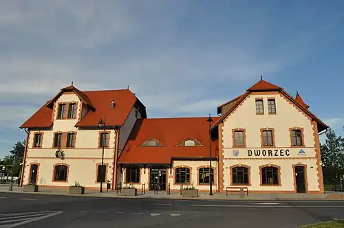 Kartuzy railway station is a railway station in the town of Kartuzy, in the Pomeranian Voivodeship, Poland. The original railway through Dzierżążno opened in 1886. The station closed to passenger trains in 2004. The station re-opened on 1 October 2015 and is located on the Somonino–Kartuzy railway and Pruszcz Gdański–Łeba railway. The train services are operated by SKM Tricity as part of the Pomorska Kolej Metropolitalna (PKM).