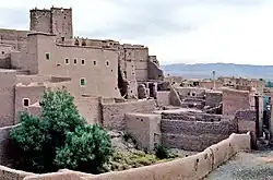 According to oral traditions, the kasbah was first built in the 17th century by the Imzwarn, a powerful local family.[1] More certainly, however, the kasbah was taken over and expanded by the Glaoui family in the 19th century.[2][1] At the height of its importance in the late 19th century, the kasbah controlled an important location at the confluence of several river valleys – including the Draa and the Dadès – which were part of the Saharan trade routes.[1] One of the members of the Glaoui family, Thami El Glaoui, was famously the pasha of Marrakesh during the entirety of French colonial rule over Morocco in the 20th century.[3][4]