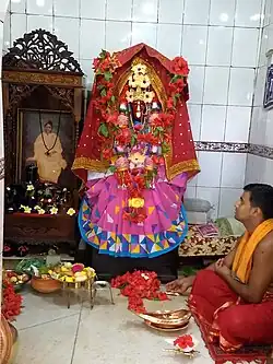 The idol of Kamalasagar Kali temple called as Kasbeswari Kali, which is actually idol of the goddess Dasabhuja Durga or Mahishasurmardini.[2] This 15 century idol made of sandstone. And recent temple was built in the 17th century. Although it is idol of Ma Durga but it worshipped as Maa Kali. Also there is a Shivalinga sculpture at the feet of the idol. Devotees were gathered in this temple mainly during festival.[4]