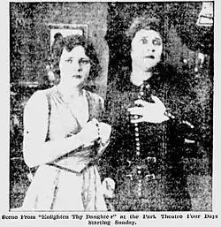 11. ^ ""Enlighten Thy Daughter," a most unconventional problem, was treated in a powerful and convincing manner in June 1917". Johnson City Press. Retrieved 2019-06-20.