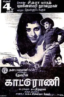 Kaattu Rani (transl. The queen of the jungle) is a 1965 Indian Tamil-language film produced by Sandow M. M. A. Chinnappa Thevar via Dhandayuthapani Films and directed by M. A. Thirumugam. The film stars S. A. Ashokan, K. Balaji, K. R. Vijaya and Sheela. It was released on 4 February 1965.
