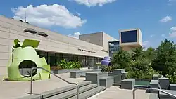 The construction of the Center was made possible by Dr. Cyrus and Mrs. Myrtle Katzen, who house much of their modern art collection within the building.[3]