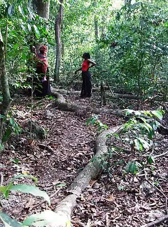 Entry into the forest was dictated by the traditional rules set by a governing body called the ngambi formed by elderly members of the community. This governing body was primarily concerned with its management, conservation and utilization of the biological resources in adherence to the traditional beliefs about the sacredness of the forest. However, the creation of a central governing body has affected the role of the local elders.[15][2]