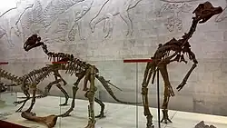 | Skeletal mounts of Kazaklambia (right) and Probactrosaurus (left) | |