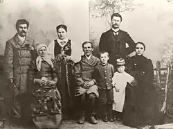 Of noble (szlachta) lineage, the Griniai family moved to the region of Suvalkija during the Volok Reform of 1560. Kazys Grinius was born on 17 December 1866, in the village of Selema, then known as Selemos Būda. The village belonged to the Augustów Governorate of Congress Poland, then part of the Russian Empire. Grinius was the third child out of the family's eleven (two of whom would die in infancy). His father, Vincas Grinius (1837–1915) was a farmer who owned 15 hectares of land. A nephew of writer and leader of the January Uprising Mikalojus Akelaitis, Vincas could speak Russian and Polish, and owned a small library containing prayer books and the works of Laurynas Ivinskis, Motiejus Valančius and Petras Vileišis.[6] Grinius's mother Ona Griniuvienė née Vosyliūtė (1839–1919) was a strict and religious Catholic. Two of Grinius' siblings, Jonas Grinius (1877–1954)[7] and Ona Griniūtė-Bacevičienė (1884–1972)[8] were book smugglers during the Lithuanian press ban. Ona's nephew Vytautas Bacevičius-Vygandas was an officer in the Lithuanian Liberty Army, Povilas Plechavičius's Lithuanian Territorial Defense Force, as well as chief of headquarters of the Tauras military district of the Lithuanian partisans.[9]