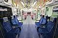 The interior incorporates a warm colour palette. Passenger accommodation consists primarily of longitudinal bucket-style seating, with transverse seating bays at car ends. Priority seating is also provided. When compared to the original 1000 series fleet, the N1000 series sets feature several accessibility improvements, such as audible door warnings, onboard passenger information displays, wheelchair spaces, and anti-slip flooring.[12]: 70, 72