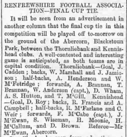 - ^ "Thornliebank v Kennishead (Renfrewshire Final Tie)". Paisley Daily Express: 2. 19 April 1880.