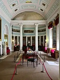 In 1764, Lord Mansfield commissioned Robert Adam to remodel the house. Adam was given complete freedom to design it as he chose. He added the library, one of his most famous interiors, to balance the orangery, and accommodate Lord Mansfield's extensive book collection. He also designed the Ionic portico at the entrance.[1][4]