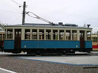Kh (Russian: Х) was the class of double axled high-floor tramcars, which were built in Soviet Union in interbellum period. First vehicles were built in 1927 and delivered to Kharkov, Ukraine. First letter of city name, Cyrillic Х (usually transliterated as Kh), was selected as a designation of whole series. After Kharkiv, tramcars of this type were supplied to many Soviet cities and became most numerous in the fleets of many municipalities. In 1941, after the onset of Operation Barbarossa, their production was stopped for maximizing war efforts. The Kh-class tramcars were finally withdrawn from the city service in the mid-1960s as they had become operationally obsolete; their sturdy construction would have allowed them to be used much longer, but tram systems preferred more modern, better riding, newer trams. A small number of surviving cars are preserved for museum purposes in Moscow, Nizhniy Novgorod, Saratov and a few other cities.