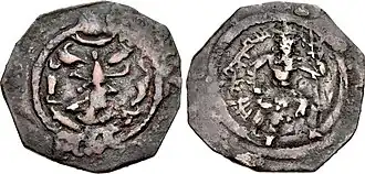 - ^ a b ALRAM, MICHAEL (2014). "From the Sasanians to the Huns New Numismatic Evidence from the Hindu Kush". The Numismatic Chronicle. 174: 279. ISSN 0078-2696. JSTOR 44710198.